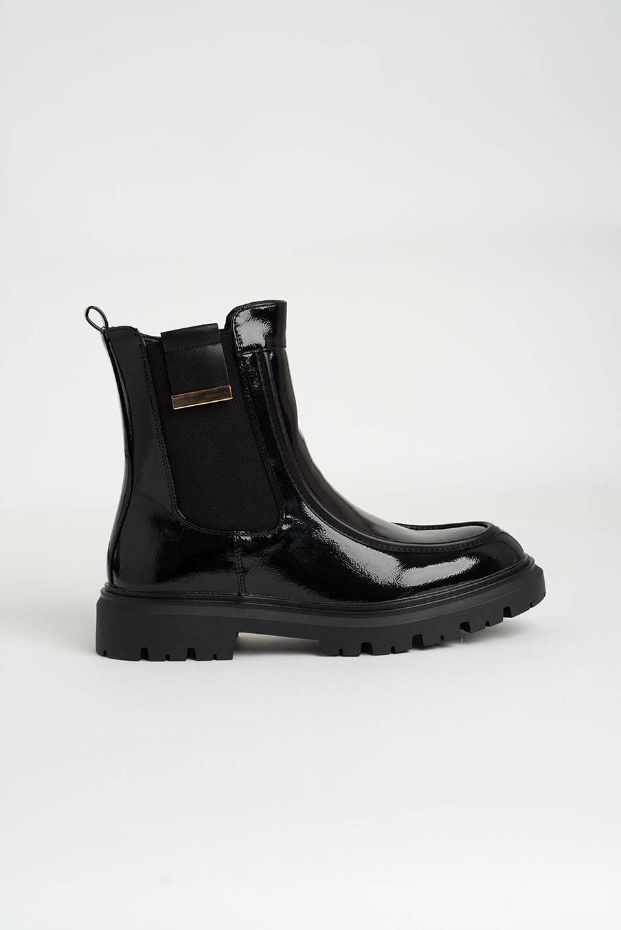 Bota de cano curto com acabamento brilhante e sola robusta, pensada para quem gosta de unir estilo e conforto. O design moderno e o fecho lateral discreto tornam-na perfeita para o dia a dia com um toque de elegância.