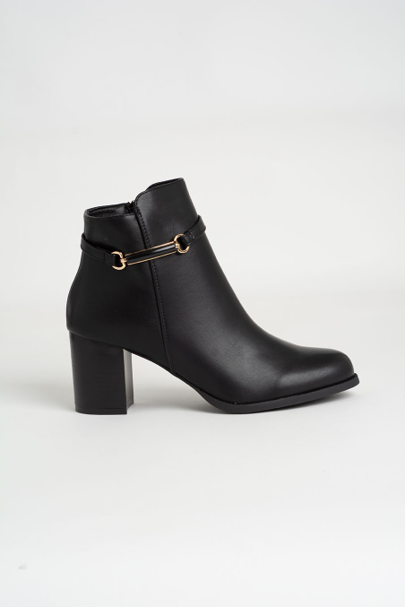 Bota de cano curto com design clássico e detalhe metálico lateral, perfeita para quem valoriza elegância e discrição. O acabamento suave e a forma ajustada realçam a silhueta e garantem um visual sofisticado.