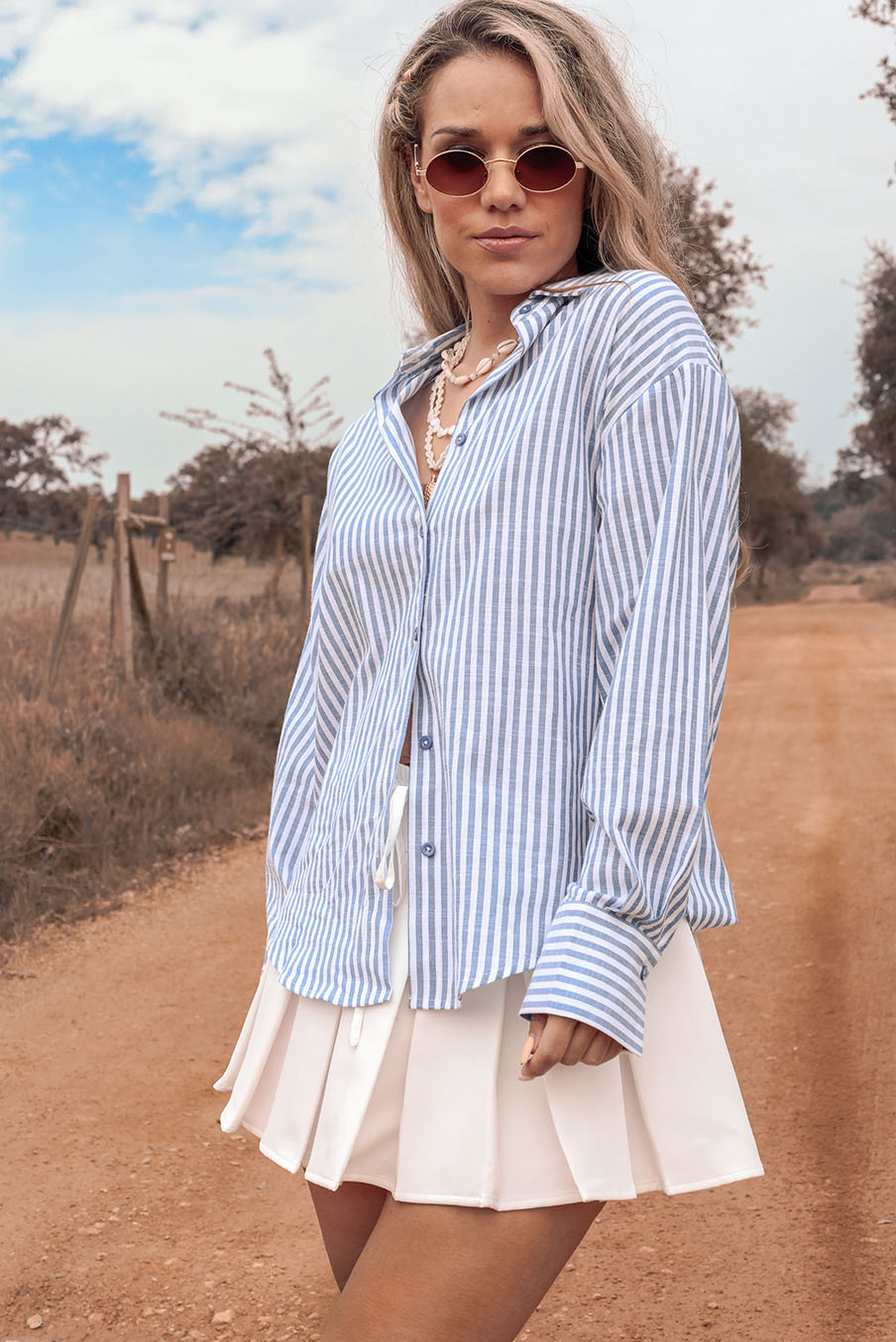 Conjunto as riscas em algodão, composto por calção e camisa.