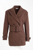 Casaco em fazenda com cinto largo e fecho cruzado — quente, elegante e com um toque clássico. Uma peça essencial para os dias frios, que garante um look sofisticado e cheio de presença.