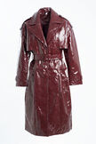 Trench coat em efeito vinil com cinto ajustável — marcante, moderno e cheio de personalidade. Uma peça que transforma qualquer look com um toque de ousadia e elegância urbana.