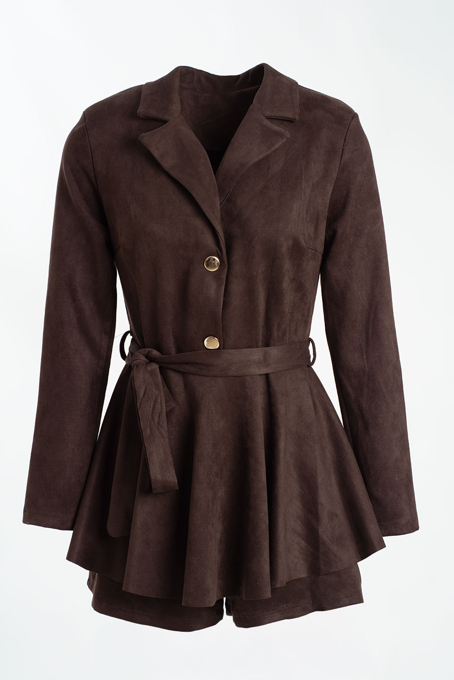 Macacão com corte de blazer e cinto ajustável — elegante, moderno e cheio de estilo. Uma peça que valoriza a silhueta e oferece um visual sofisticado e confiante.