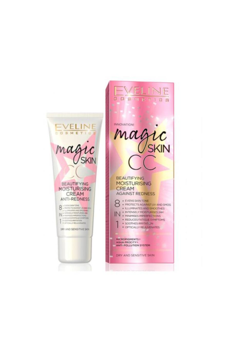 O Creme Hidratante Magic Skin CC da Eveline, é um cuidado embelezador que tem efeito antivermelhidão, atuando como corretor de cor.