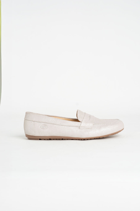 Um toque de brilho subtil para iluminar qualquer look! Este mocassim bege claro com acabamento cintilante é perfeito para quem gosta de elegância discreta com um toque glamoroso. Confortável e versátil, adapta-se a visuais casuais ou mais compostos.