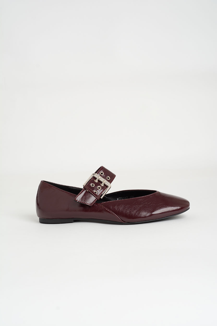 Sabrina moderna com tira larga e fivela metálica, que combina o estilo clássico com um toque contemporâneo. O acabamento brilhante e o design elegante tornam-na perfeita para dar um ar sofisticado ao dia a dia.