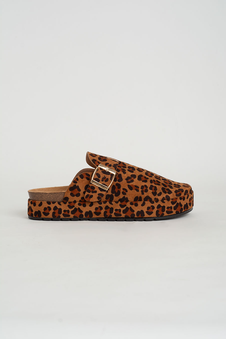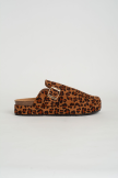 Tamanco estilo clog em camurça sintética com estampa animal print, perfeito para quem gosta de unir conforto e ousadia. O modelo conta com fivela metálica ajustável e sola anatómica que garante bem-estar durante todo o dia.