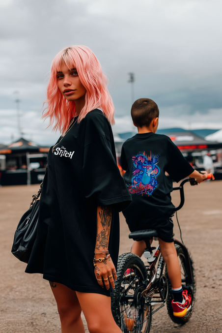 Stitch em modo sexta-feira total! Uma t-shirt para celebrar aquele mood de quem sobreviveu à semana… e já só quer dançar.