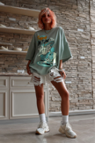 Corte oversize. Para usar como vestido ou com calções curtos por baixo, eu uso S mas visto L para aquele look mais solto e cool.